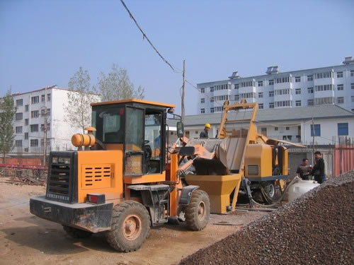 1. The main engine of the stirring concrete pump is composed of the hydraulic system, the electric system, the pump system, the mixing mechanism, the distributing valve, the running gear, the cowling, the rack, the transfer pipeline and so on.